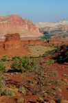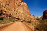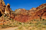 Then we did the lovely scenic drive. It was gorgeous, as expected. The wash crossed the road several times. And Capitol Gorge was closed due to flash floods from yesterday or earlier this week. But Grand Wash was open. So we took the dirt road. There was another arch there in the distance. At the end of the dirt road, there was like a 3 mile strenuous trail to the arch. No thank you.