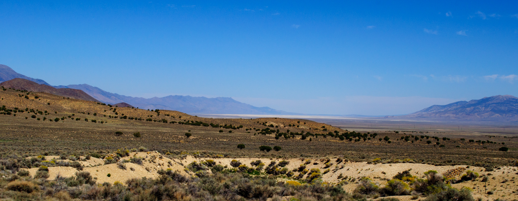 Today’s plan was to drive through Nevada via highway 50, from Ely to Carson City. Highway 50’s little slogan is “the loneliest highway in the nation” or something like that. Kind of strange, but makes sense… We travelled through basin after range after basin after range… I was surprised by how I got pretty good cell phone reception in the majority of the valleys, and it’d go down or cut off in the mountains throughout the state.