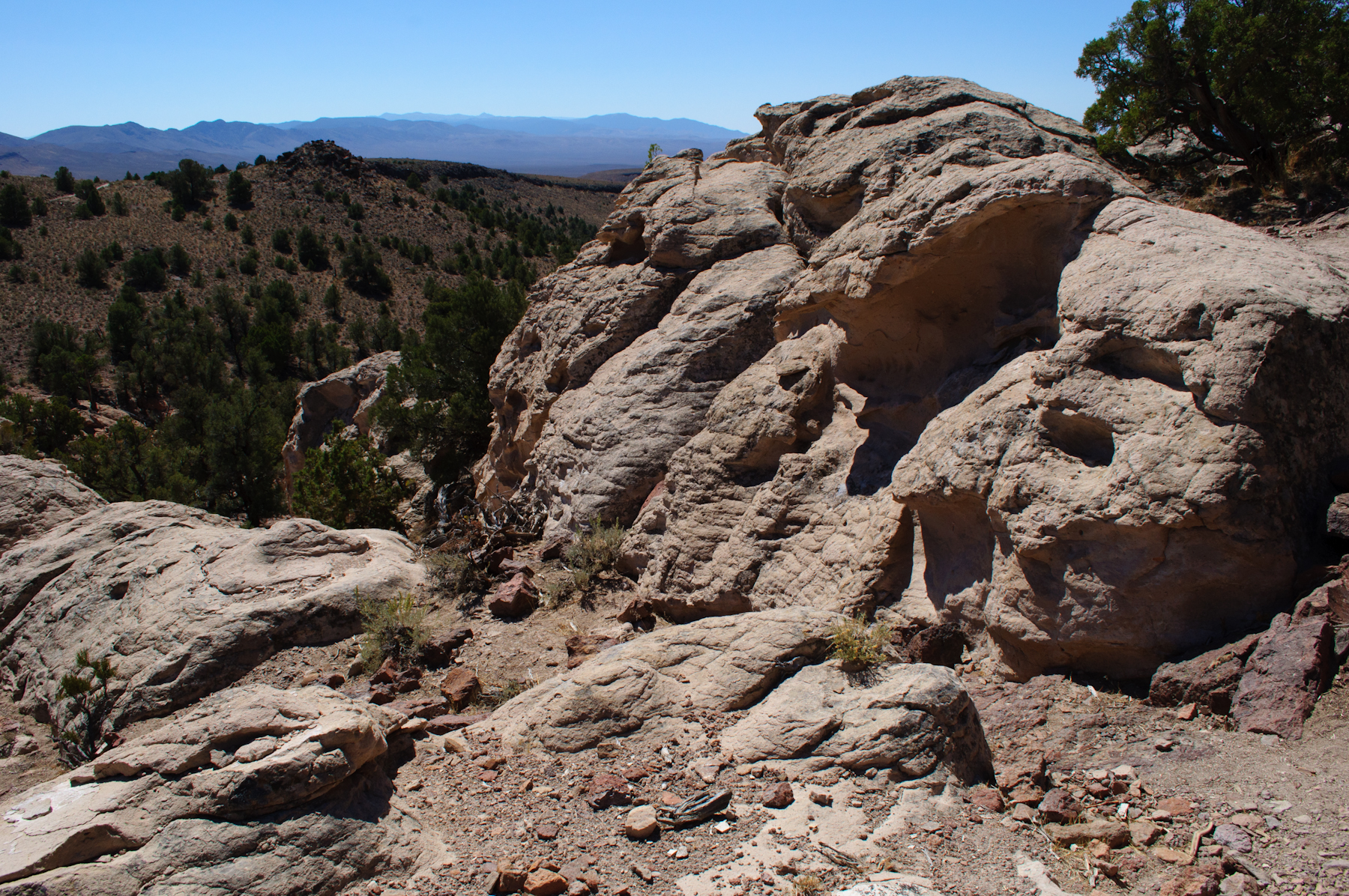 We made a bathroom stop at Hickison Petroglyph Site that is managed by the Bureau of Land Management (BLM). We checked out their short (0.6 mile) trail near their campground. We saw other petroglyphs signs for dirt roads that went off into the distance – no time for such an adventure. It was a cool little pit stop to stretch the legs and such.